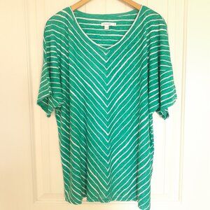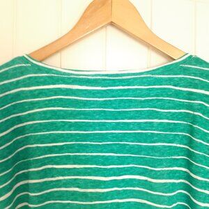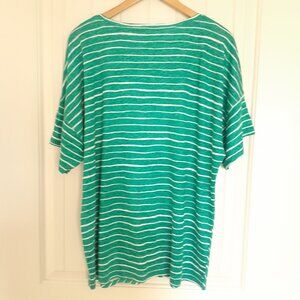 Chico's Easy Linen Striped Short Sleeve Tee Tropical Jade Green Size 3/Size XL