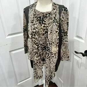 Chicos Easy wear Shirt/ vest 2 piece Set Size 1 Faux Suede Vest Abstract Animal