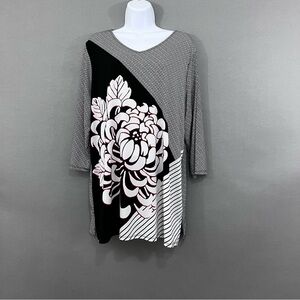 Chico’s Easywear Black Print 3/4 Sleeve Tunic Blouse