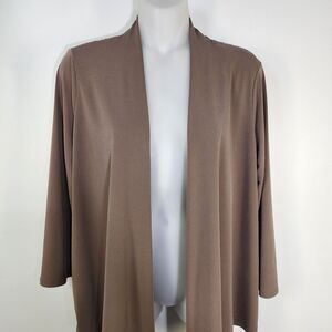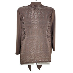 Chicos Easywear Cardigan Size 0 Small Brown Open Front Draped Lace Semi Sheer