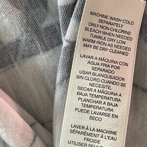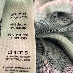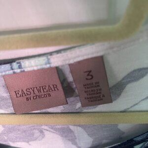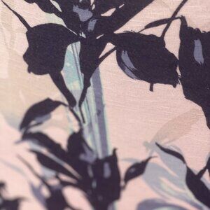 Colors of navy, light blue and off white. Flower print, stalks of flowers are vertical which has slimming effect. Smoke free home.