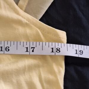 This blouse from Easywear by Chico's is in excellent preowned condition - no flaws. Naples Yellow. Tank Top with Sheer Overlay. Lightweight, Rayon Spandex and Polyester. Size Small (Chico's Size 1)