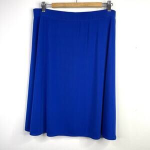 Chicos Easywear Slinky Knit Pull On Skater Knee Length Skirt Bright Blue 2 L 12