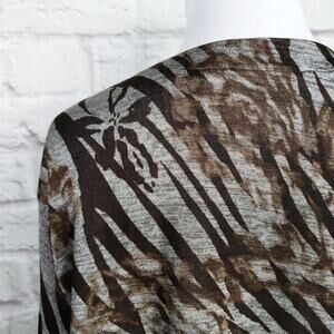 Chico's Easywear Sz 3 Brown Gray Shimmery Animal Print Jacket Chicos XL 16