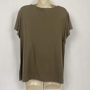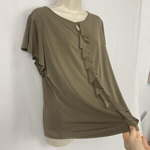 Chicos Easywear Top Size 2 Chocolate Brown Ruffle Front Keyhole Flutter Sleeve L