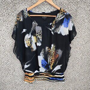 Chicos Easywear Top Womens 2 US Large Black Scoop Neck Blouse Casual Ladies