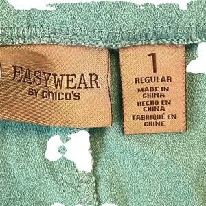 Elevate your casual wardrobe with these Chico's Easywear women's pants. The blue pants feature a pull-on closure, button and zipper accents, and a mid-rise waist. The tapered leg and flat front design give the pants a modern look, while the nylon, spandex, and rayon material makes them comfortable and stretchy. Perfect for summer, fall, and spring, these pants are versatile and can be worn for casual occasions. The 26-inch inseam and 33-inch waist size make them a great fit for women who wear size M. Machine washable and made in China, these pants are a must-have for any wardrobe.