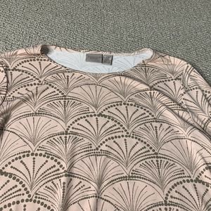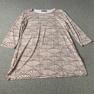 Chico's Easywear Womens Top Size 0 US S Pink Brown Fan Print Tunic 3/4 Sleeves
