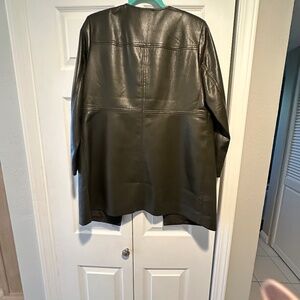 Chico's Edge to Edge Olive Topper 3/4 faux Leather