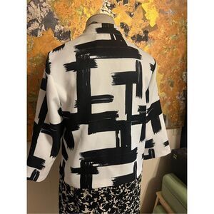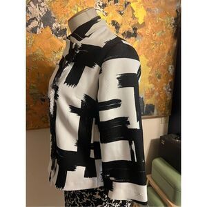 Chico’s Edgy Black & White Lightweight Poly Jacket w/Frayed Placket, Pockets 2-M