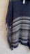 Striking navy blue and white Chico’s V-Neck Poncho Sweater with Beautiful Detailed Geometric Acrylic Knit patterns.