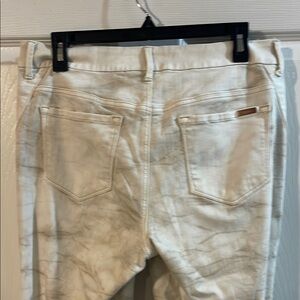Elegant skinny pants with a subtle cream and gray pattern. Perfect for any occasion.