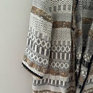 Chico's Elenore Textured Open Front Cardigan 3/4 Sleeves Neutral Artisanal