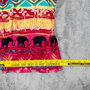 Chico’s women’s button shirt, size 2 (fits like XL). Bold multicolor tribal print with elephant border detail. Short sleeve, collared neckline, button front closure. Lightweight and breathable cotton blend, perfect for casual boho style or travel wear.
