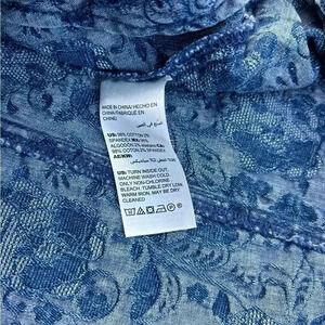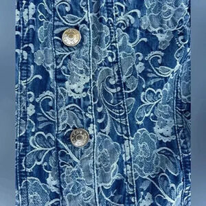 Chicos Elongated Jacquard Pattern Denim Jean Jacket Size 0 US 4/6 Deep Pockets