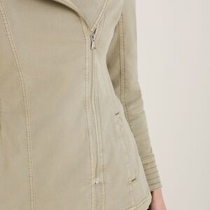Chico’s Elongated Moto Casual Twill Denim Jacket, Cool Sage, Sz 4 (20/22) - NWT!