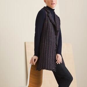Chico's Elongated Tweed Shimmer Vest Size 1 Navy Pink Spring Summer