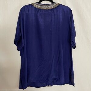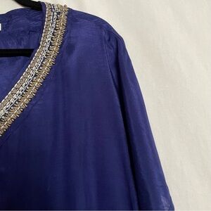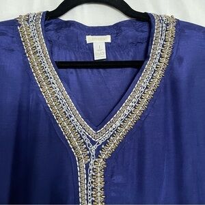 Chico's Embellished Beaded Embroidered Relaxed Fit Chic Boho Blouse