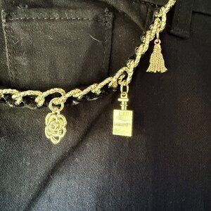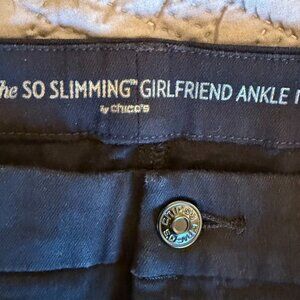 So Slimming Girlfriend Ankle Jenas with Gold Charm Embellishment. Designer: Chico's. Size: 1.5 (10). Excellent Condition.