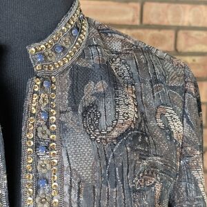 Chico's Embellished Brown Black and Gold Tapestry Jacket