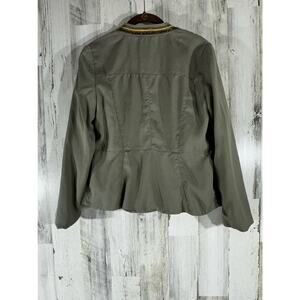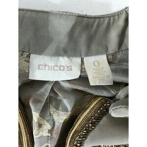 Item: Chicos Embellished Military Jacket Size 0 or Small Khaki Green Gold Bead Trim