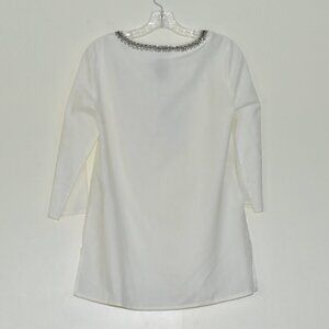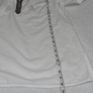 Chico's Embellished Neck Pullover Tunic Lace Up Blouse With Tassels Size 0 Small/4 Antique White