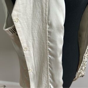 Stylish Chico’s vest with intricate embroidery. Features beige and brown tones.