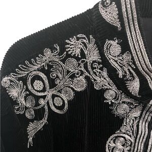 Chicos Embroidered Black and Silver Corduroy Jacket