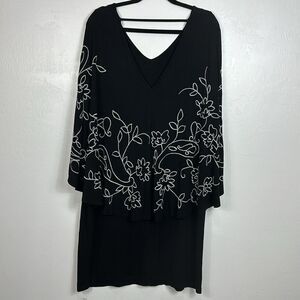 Chico’s Embroidered Cape Flowy Sleeve Dress In Black Size XL