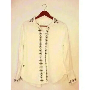Chico's Embroidered Classical Boho Women's Button Down Shirt Size 0.5 or XS, 6US