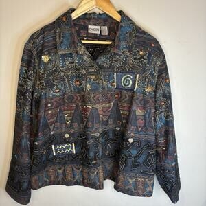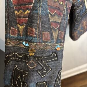 Chico's Embroidered Jacket XL Patchwork Stones Embellish Art to Wear Aztec Boho