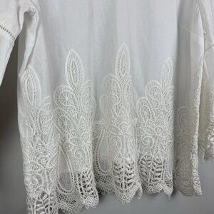 Chicos Embroidered Lace Top Women 3 US XL White Boho Bell Sleeve Coquette Blouse