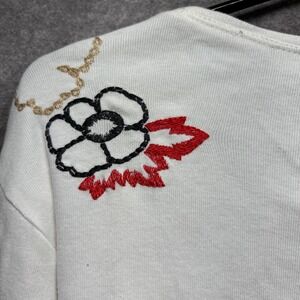 Chicos Embroidered Lady Girl Tee Top Womens 2 White Floral Art to Wear Funky