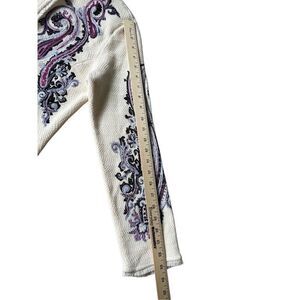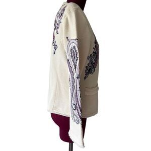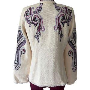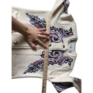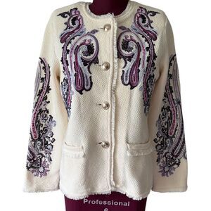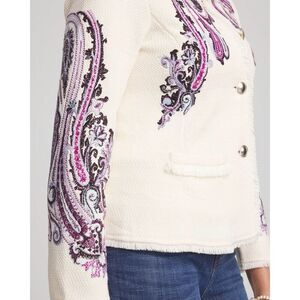 Chico’s Embroidered Paisley Lady Jacket size 1 US M Cream Purple Button Front