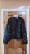 Chico's multi-colored blazer jacket in excellent preowned condition and features a round neck, snap buttons closure, buttoned cuffs, and a thin inner lining. As shown in the photo, there is a tiny flaw where the beading is loose.