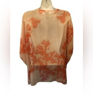 Chico’s Embroidered Printed Poncho Sz. S/M Orange Tan Sheer Batwing Summer Happy