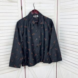 Chicos Embroidered Dupioni Slub Silk Shacket Jacket Black Brown Medium
