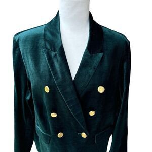 Chico’s Emerald Green Soft Velvet Blazer 6 Golden Button Pockets Collar Size 3