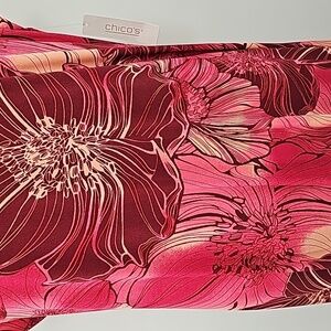 Chico's Soft Sleeveless Floral Comfy Loose Fit Stretchy Maxi Dress with an Explosion of Beautifully Subtle Colors Including Shades of Burgundy-Red Pink and Peach. No Pockets or Slits. Gorgeous Flowy Drapey Polyester Spandex Fabric. Easy Wear Ready for Fun! 11