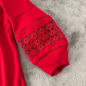 Chico's Eyelet Balloon Sleeve Ponte Dress Wild Poppy Red 2 Large 12