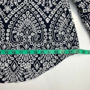 Chico´s Eyelet Billow Sleeve Shirt NWT Sz 2.5 14 Navy Blue White Embroidered