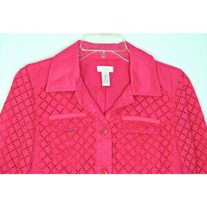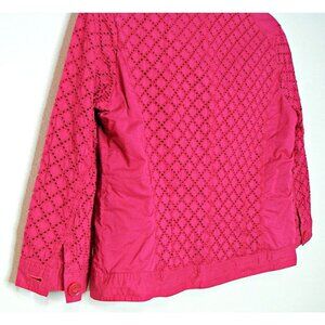 Chicos Eyelet Button Up Jacket Fuchsia Pink Layer Cropped Pockets Size 0 Small 4