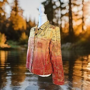 Chico's Fall Tribal Boho Patchwork Embroidered Denim Jean Jacket Art-to-Wear 1M