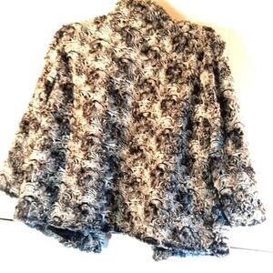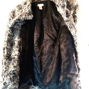Chico's Faux Fur Hook & Eye Cropped Cardigan sz 1 So soft black and white fully lined with sides pockets and 3/4 length sleeves