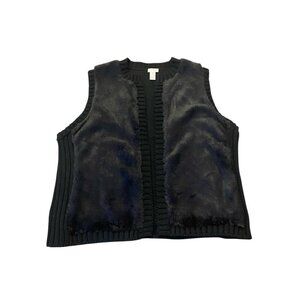 Chicos Faux Fur Black Vest Womens 3 US XL 16/18 Open Front Fall Winter Knit