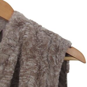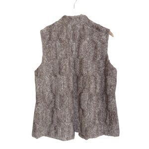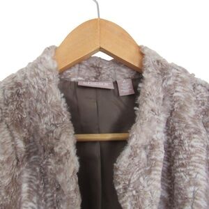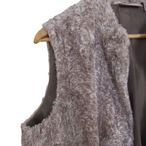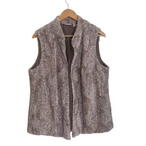 Chicos Faux Fur Vest Size 2 Large Brown Lined Open Front Pockets Warm Classic