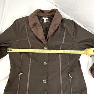 Chico’s Faux Fur collar & cuffs 3 button jacket in Chocolate Brown size Large
