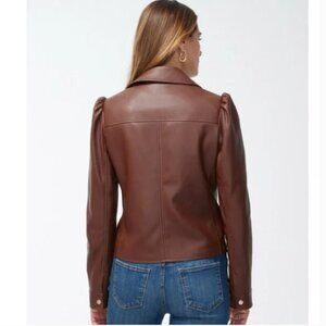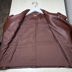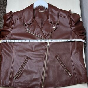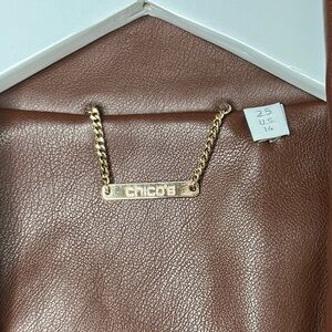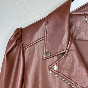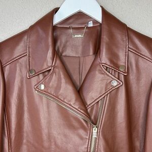 Chico's Faux Leather Cropped Moto Jacket in Chocolate Brown Size 14 (2.5)