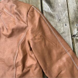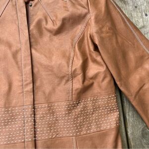 Chico's Faux Leather Tan Zip Up Jacket Blazer Size 1 Large