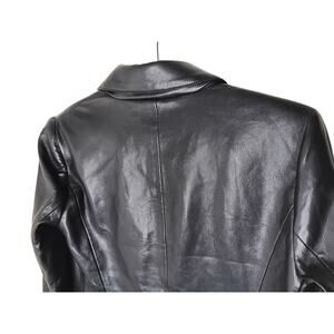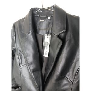 Chico’s Faux Leather Topper Coat Black Longline Blazer Jacket Size 0 (S) NWT